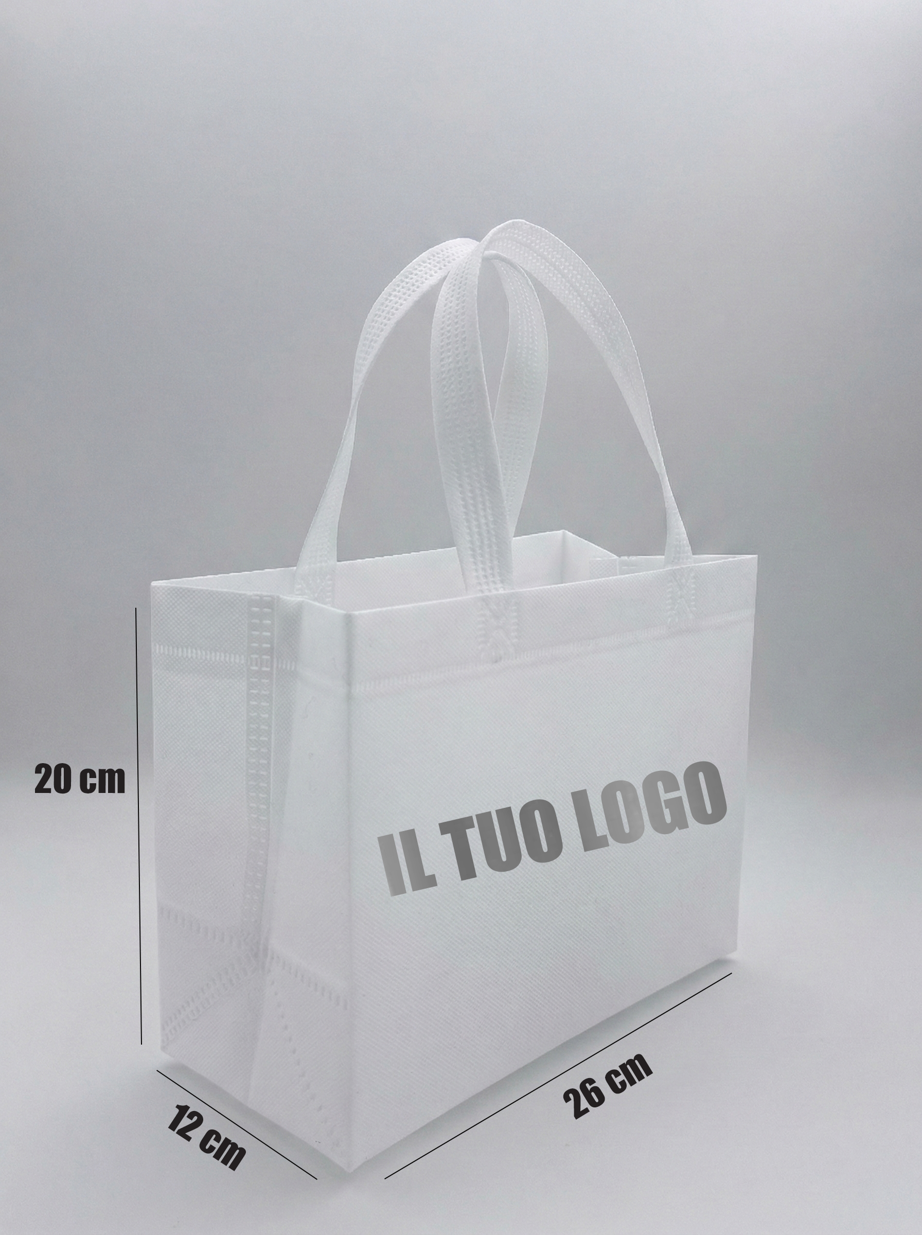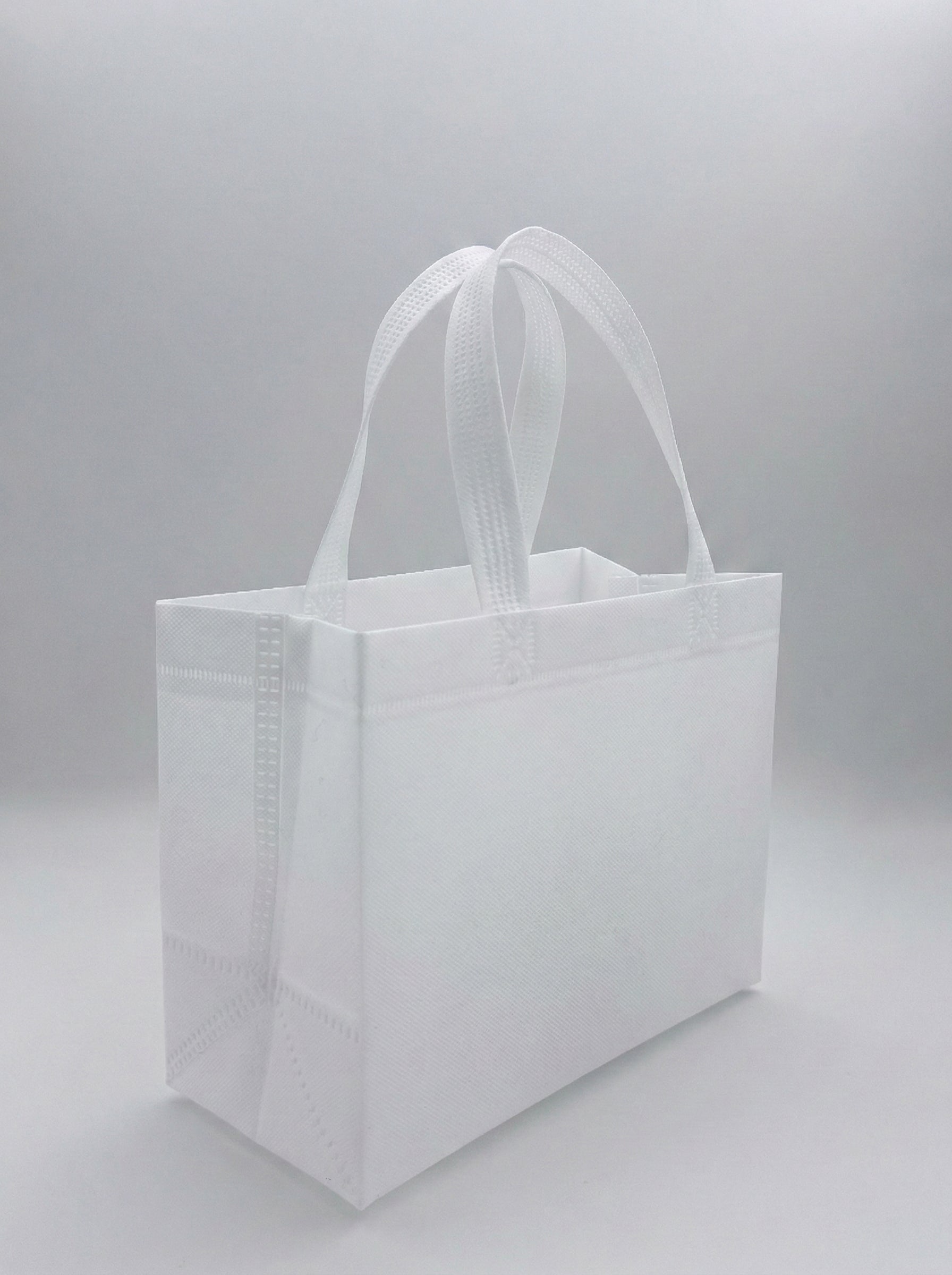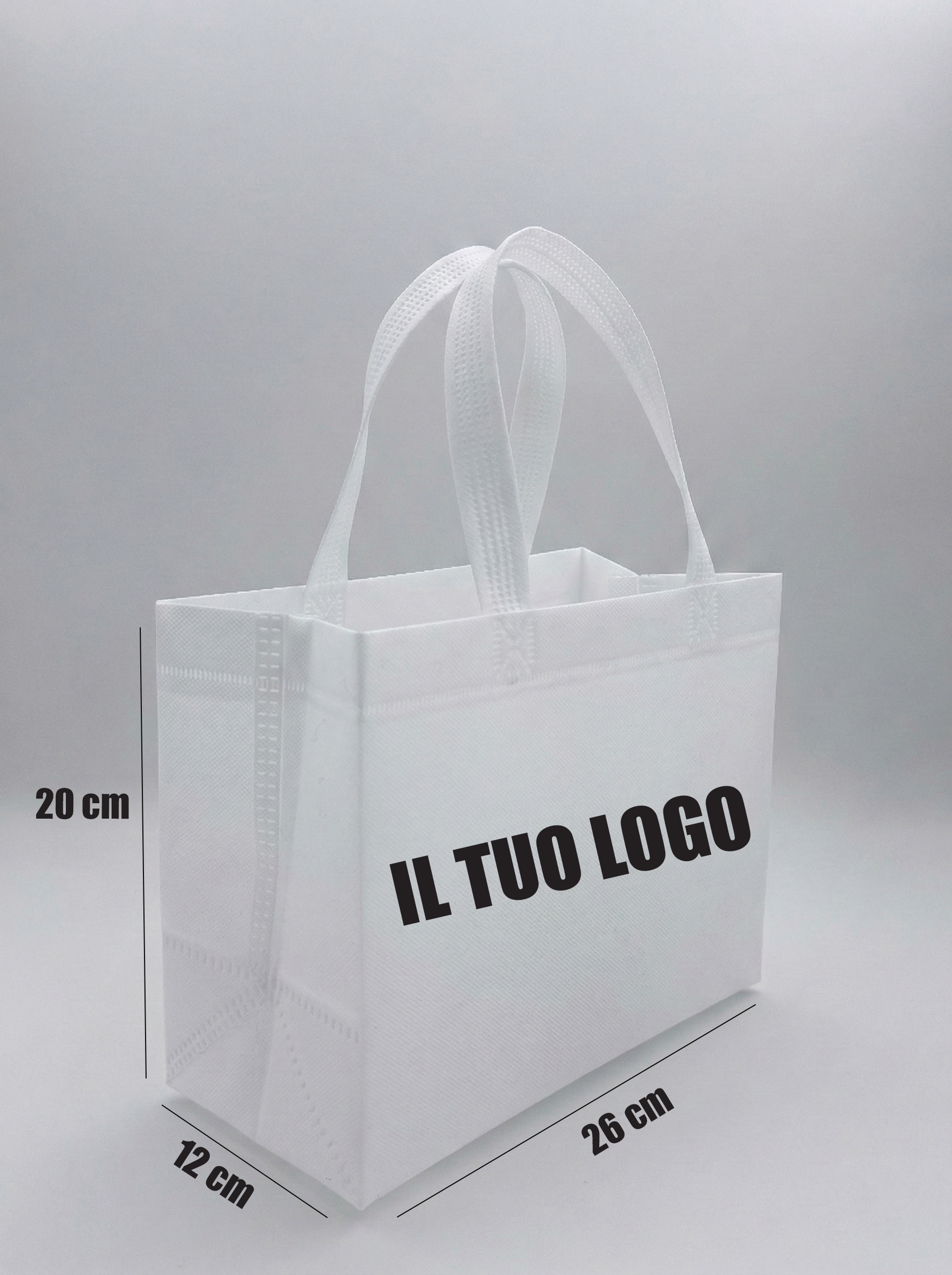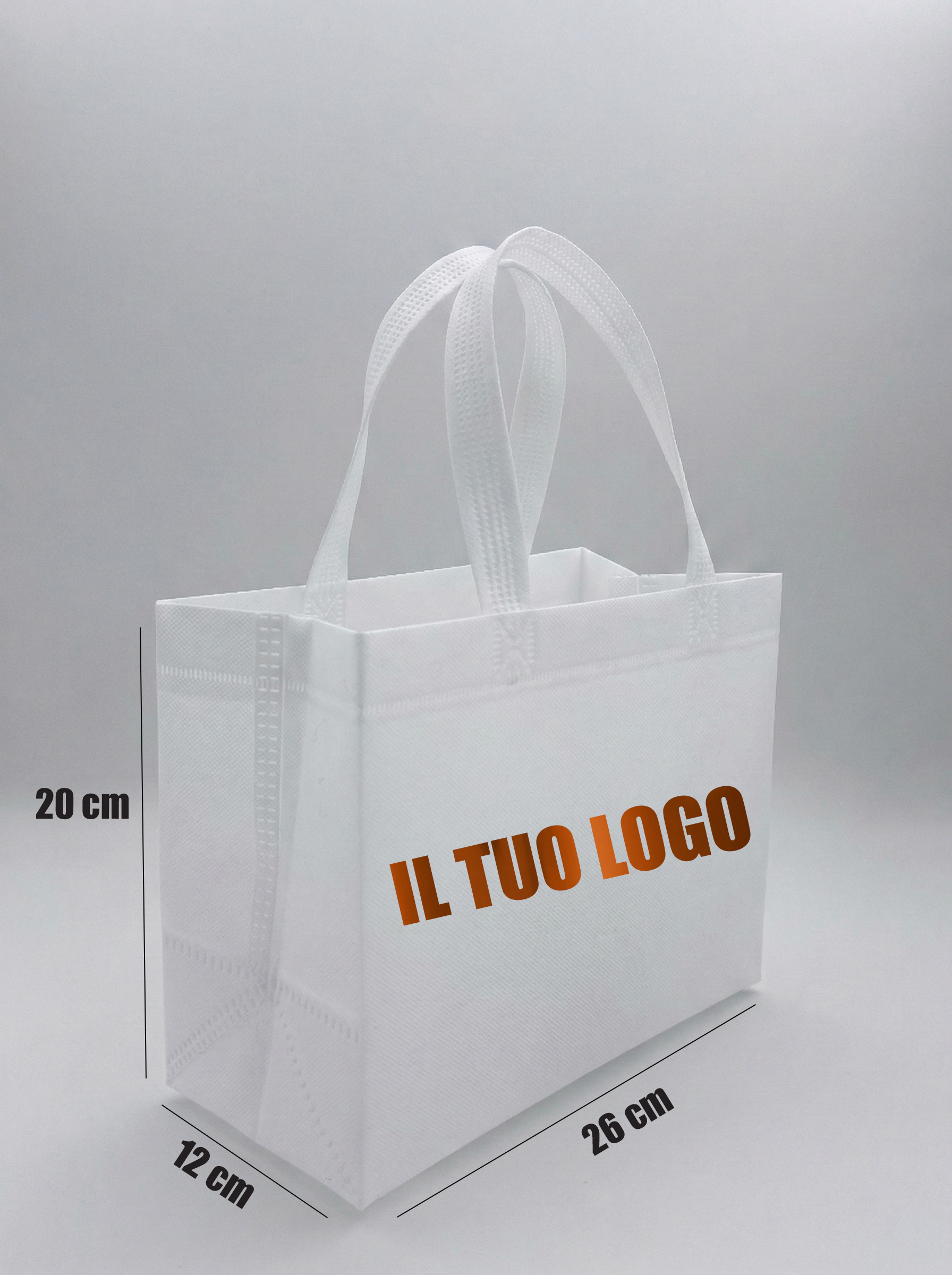 Il nostro formato piccolo di shopper in TNT (Tessuto Non Tessuto) unisce l'ecologia all'altissima resistenza. È la scelta perfetta per profumerie, farmacie, gioiellerie e negozi di accessori che desiderano offrire un packaging riutilizzabile, compatto e rispettoso dell'ambiente.